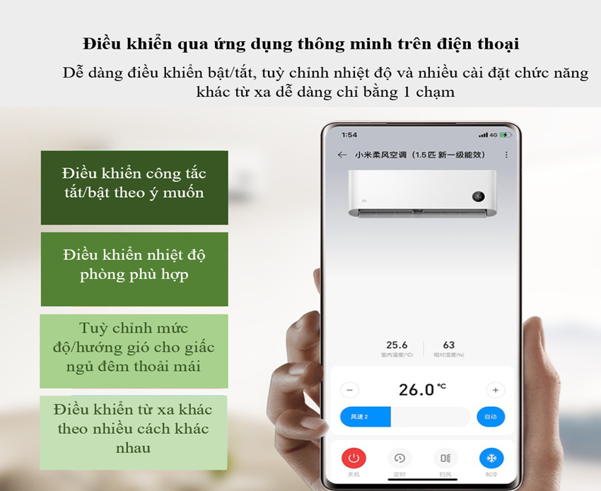 - Mijja APP khởi động từ xa điều khiển bằng một tay: Có thể bật và tắt điều hoà từ xa – Đặt các chức năng khác nhau để kiểm soát nhiệt độ bất cứ lúc nào