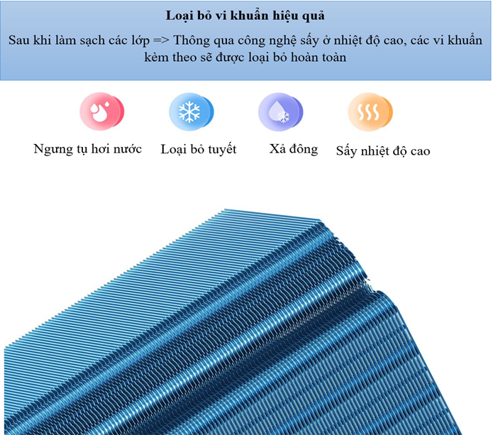 - Tự rửa sạch bụi bám trên bề mặt dàn trao đổi nhiệt bằng nước ngưng tụ để giảm điện trở nhiệt, nâng cao hiệu suất, đảm bảo ĐH hoạt động ổn định.