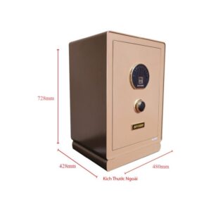 Kích thước thân két là chiều cao 50cm, chiều rộng 41cm, chiều sâu 36cm. Kích thước thân két bao phủ bao gồm: Chiều cao được cộng thêm phần chân đế 28mm. Chiều sâu được cộng thêm 28mm phần nhô ra của mặt khóa và tay nắm. Phần này sẽ được tính khi bạn có ý định đặt két trong tủ. Trong hộc kệ hay vị trí nào đó mà yêu cầu kích thước chính xác.
