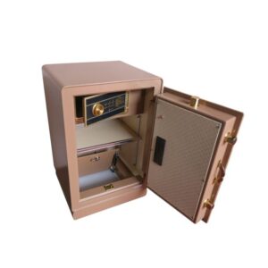 Nội thất được bọc một lớp da họa tiết vuông màu vàng nhạt. Rất sang trọng và dễ lau chùi. Đặc biệt không dễ bị bong tróc bởi thời gian. Được chia làm 02 ngăn có thể chỉnh cao thấp. Hoặc tháo ra nếu cần thiết khi để những đồ vật to hơn. Thêm 1 ngăn kéo có mật mã, để dễ dàng bảo quản và lưu giữ những gì quý giá nhất.