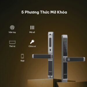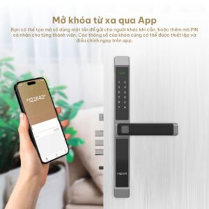 Khóa cửa điện tử A100 hỗ trợ nhiều phương thức mở khóa tiện lợi gồm: vân tay, mã số, thẻ từ, chìa cơ và mở khóa từ xa qua app Hexa. Nhờ đó, người dùng có thể linh hoạt lựa chọn phương thức phù hợp với từng tình huống sử dụng và đáp ứng nhu cầu của mọi lứa tuổi trong gia đình.
