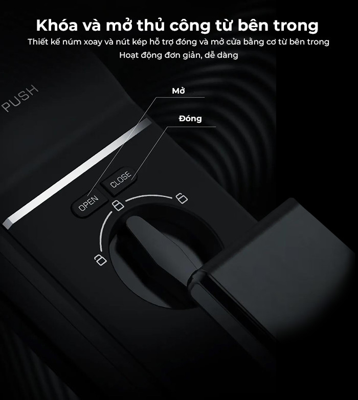 - Chốt riêng tư: Vô hiệu hóa mở cửa từ bên ngoài bằng mọi phương pháp, giữ không gian riêng tư bên trong nhà.