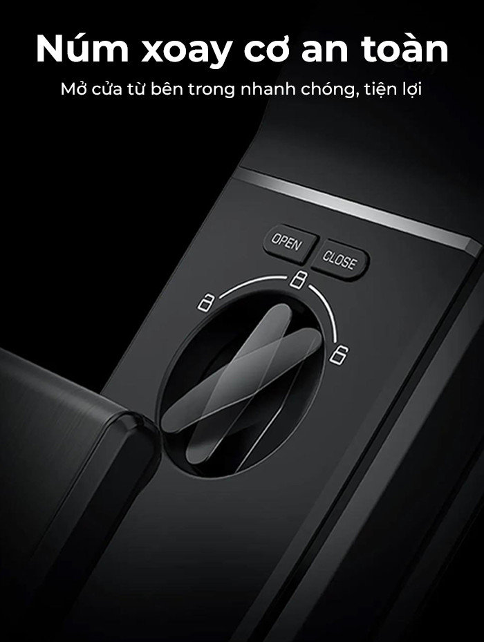 Khi xảy ra lỗi hệ thống, bạn có thể xoay núm cơ để mở cửa ra từ bên trong. Ngay bên trên núm cơ là nút đóng và mở. Nút Close còn có chức năng chuyển khóa sang chế độ riêng tư. Để mở khóa từ bên trong, ngoài núm cơ và cảm biến hồng ngoại, còn có thể dùng nút Open.