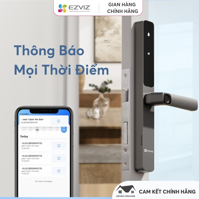Mọi hoạt động ra vào đều được cập nhật ngay trên ứng dụng EZVIZ. Bạn sẽ nhận thông báo tức thì khi cửa được mở, khi pin yếu hoặc khi có dấu hiệu cạy phá, giúp bạn luôn chủ động trong mọi tình huống.