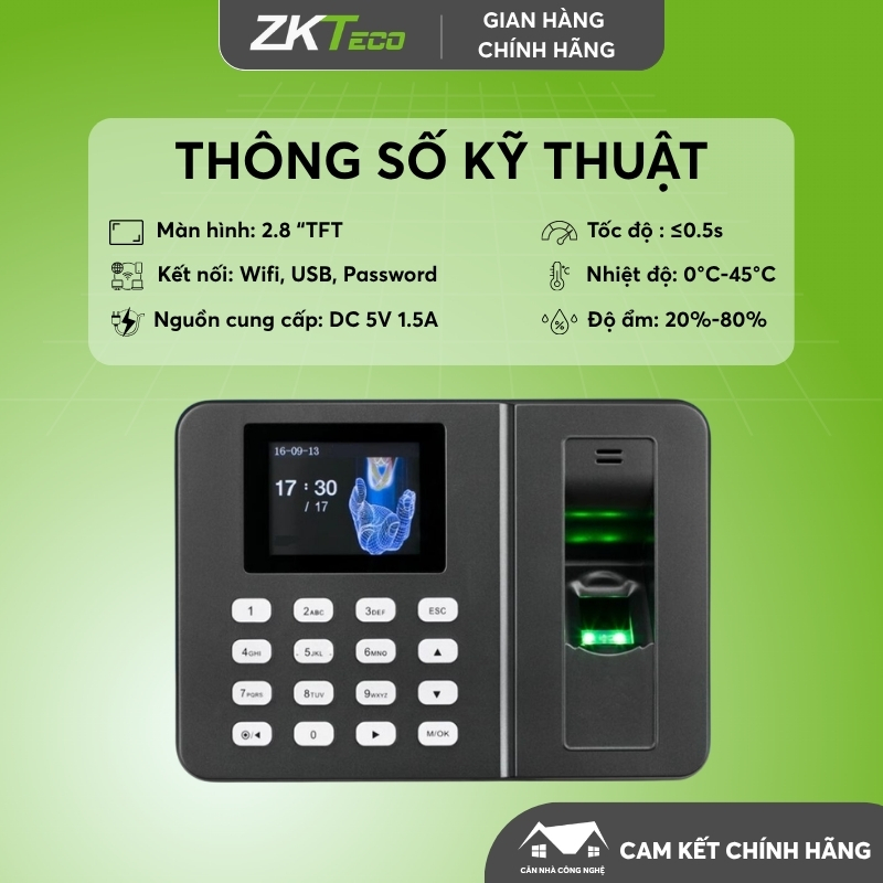 Thông số kỹ thuật của máy chấm công ZKTeco LX35