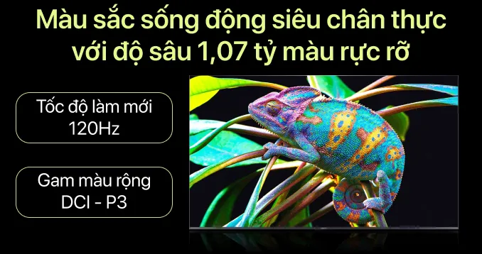 - Gam màu DCI P3 90% với hiệu xuất màu sắc đột phá. kiến tạo nên không gian sắc màu chân thật (ΔE≈2)